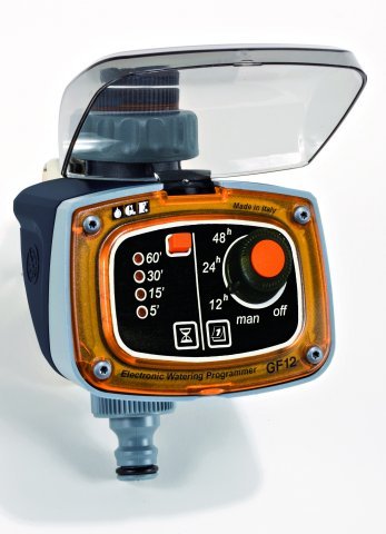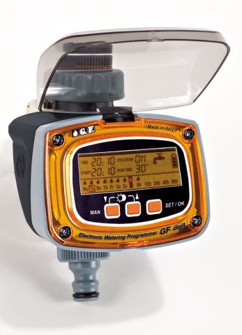 Praticità e massima facilità di gestione senza rinunciare a numerose funzioni. Queste sono le caratteristiche dei nuovi prodotti lanciati da GF per garantire un sistema d’irrigazione programmabile d’avanguardia ma di facile utilizzo. GF 12 è un facile e intuitivo programmatore con 12 programmi di irrigazione; la funzione “manuale” permette l’apertura del flusso come un normale rubinetto. GF 15 a batteria dispone di 15 programmi automatici selezionabili dal display Touch Screen. Si possono impostare irrigazioni multiple con tempi e giorni differenziati. Dotato di comando per partenza manuale. GF Digit è fornito di display digitale completamente programmabile. Permette partenze ogni 6, 12, 24, 48, 96 ore oppure in giorni fissi della settimana. Tutti i programmatori sono dotati di funzione di chiusura del flusso automatica dopo un’ora di inattività o in caso di esaurimento della batteria. Protetti dall’acqua e dall’umidità funzionano con una batteria alcalina da 9 volt, sufficiente per un’intera stagione.