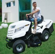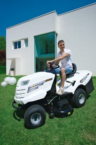 Il Trattorino Alpina è dotato di sette diverse posizioni di taglio, un sacco di raccolta posteriore ed un ampio serbatoio per lavorare molte ore consecutive.