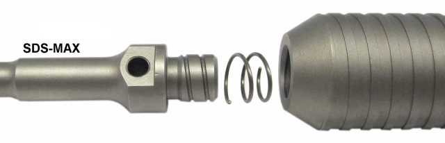 Il particolare della molla montata sul filetto del gambo consente un ottimo accoppiamento con la fresa a tazza e garantisce un agevole smontaggio dopo le operazioni di foratura. Una simile operazione non risulta assolutamente agevole con le comuni tazze per martelli. La corona è ora sempre smontabile con facilità grazie all’apposita molla di accoppiamento, che si inserisce tra tazza e gambo SDS-MAX. Grandi rendimenti sono perciò assicurati nel calcestruzzo, nel muro, nelle pietre calcaree. Si assicurano ottime performance nell’utilizzo a rotopercussione su trapani pesanti con potenza superiore a 900 W. Tutto questo è garantito dalla combinazione dei denti in metallo duro dall'ottima geometria con il corpo in acciaio di qualità, dotato di appropriate caratteristiche di tenacità per resistere ai forti urti durante l’utilizzo.