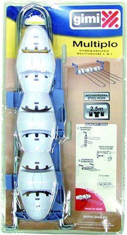Seppur piccolo nelle dimensioni, il nuovo stendibiancheria di Gimi è realizzato in resina e acciaio e sviluppa 2,5 metri di filo per stendere, con una portata di 2,5 kg di bucato. La confezione è un blister compatto.