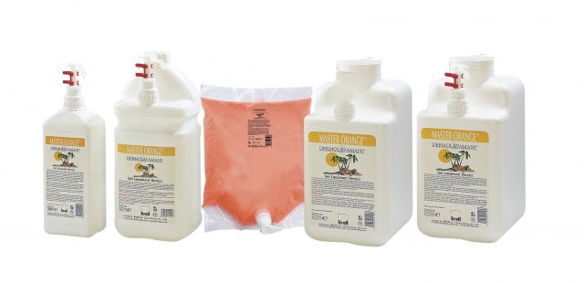 Possono dei semplici dermolavamani togliere anche le macchie più ostinate, come quelle di vernici e inchiostri? Kroll risponde di sì, grazie all'utilizzo di una linea specifica, la Linea Gel Dermolavamani, comprendente prodotti a base di sapone in crema gel e prodotti detergenti altamente specifici contro determinati tipi di sporchi (quali appunto vernici e inchiostri). Tutti i prodotti sono il risultato di un perfetto equilibrio tra sostanze lavanti di origine esclusivamente naturale vegetale da fonti rinnovabili e un giusto mix di abrasivi inerti che evitano l’otturazione degli scarichi. Master Orange Vernici è un detergente in gel specifico per vernici a pH 7,0 la cui formula è stata messa a punto per rimuovere completamente le macchie di vernice, mastice, silicone e smalti dalle mani. Scioglie efficacemente anche gli sporchi grassi, ma non è aggressivo, data la presenza delle proteine del germe di grano e dei tensioattivi di origine vegetale.