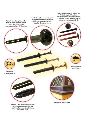 - con vite in rame (TNB-TMR), nelle misure mm 6x40, 6x50, 6x60;