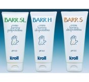 La seconda linea BARR è una linea ideale per il settore bricolage e casalingo. Si tratta infatti di una serie completa di prodotti a pH 5,5: Barr Idroprotettiva, Barr Oleoprotettiva, Barr Poliprotettiva. Sono formulazioni più semplici rispetto a quelle della linea Filmocrem e questo rende più economico il loro prezzo, ma rimane inalterata la garanzia la sicurezza di chi lavora e la qualità che da sempre contraddistingue i prodotti Kroll. La linea Barr si completa con Idroglicina, una crema idratante mani a base di Glicerina e Aloe Vera.