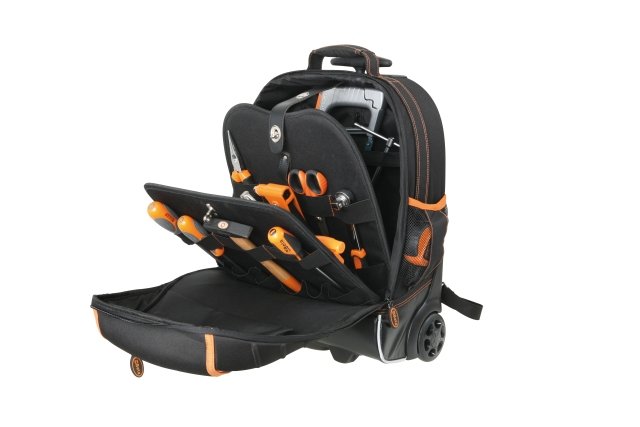 Pratico e funzionale, C6 è lo zaino portautensili di Beta in tessuto tecnico, con manico telescopico per il trasporto, due pannelli portautensili removibili, funzionali tasche esterne, ruote integrate nella strutturacon pratica copertura anti-polvere per l'utilizzo come zaino e base in materiale resistente all'acqua.