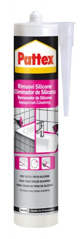 La rimozione del silicone è un’operazione che si verifica di frequente nei lavori domestici o professionali. Per risolvere il problema con la massima efficacia, Pattex propone una nuova soluzione in gel pronta all'uso. Rimuovi Silicone, infatti, elimina in modo semplice e veloce i residui di silicone rimasti sulle superfici incollate e sigillate di vetro, ceramica, metallo (eccetto alluminio anodizzato) ed, essendo in gel, è ideale anche per applicazioni su superfici verticali. Prima dell'uso, l'area in cui vi sono residui di silicone deve essere completamente pulita e asciugata. Il prodotto va distribuito in modo da coprire totalmente la superficie di silicone da eliminare e deve agire per almeno 3 ore, per poi essere rimosso con una spatola.
