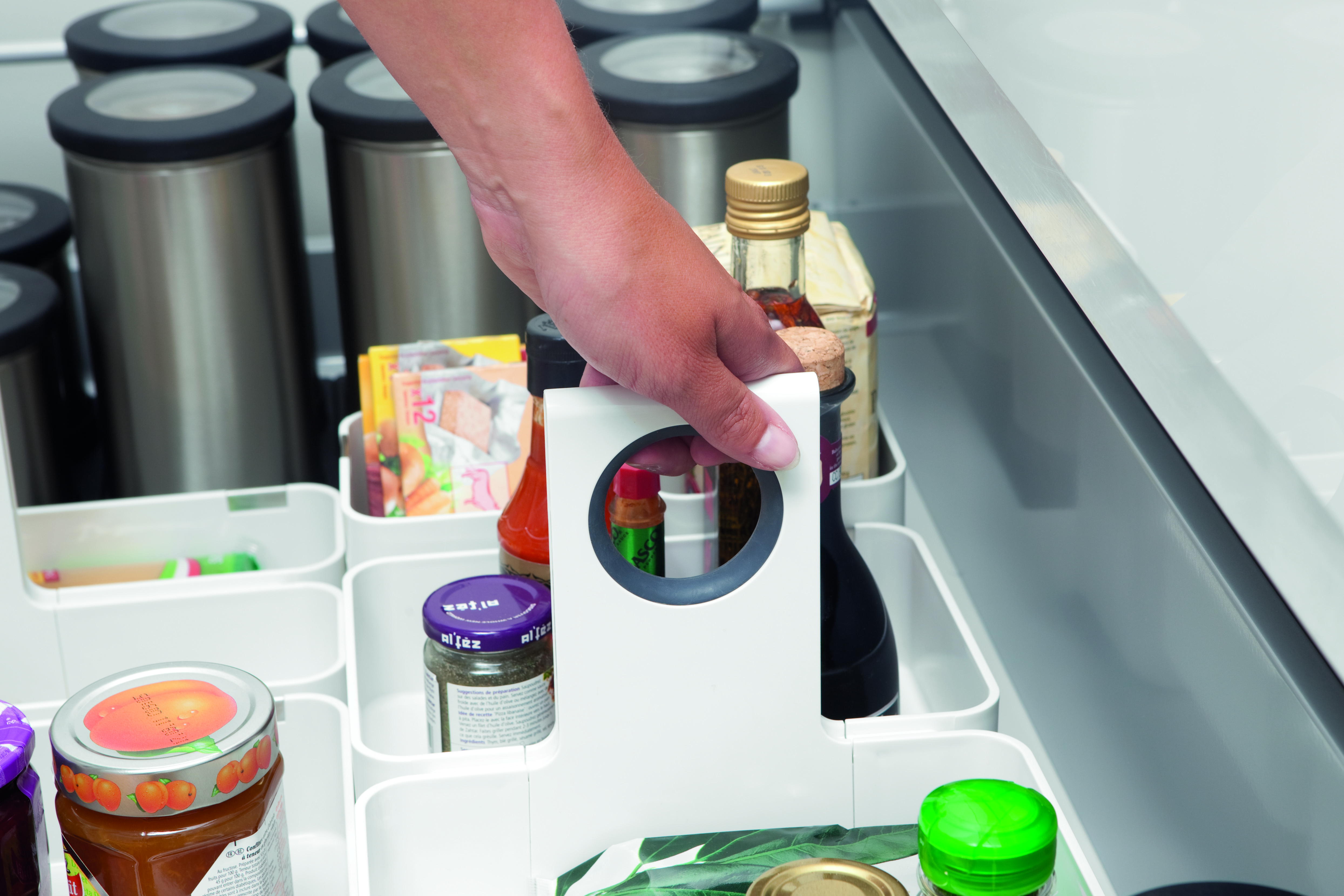 Kitchen Organizers è il sistema modulare di supporti studiato da Brabantia per essere adattarsi alle particolari forme spaziali delle cucine o dei cassetti, così come alle forme mentali di chi vive la casa. La struttura è progettata per combinarsi o separarsi con estrema semplicità, permettendo ai supporti di vivere dentro o fuori dai cassetti. Il design è essenziale e pulito come nel più classico stile Brabantia, e si adatta a cucine anche molto differenti tra loro. La superficie trasmette piacevolezza al tocco quanto stabilità antiscivolo all'interno dei cassetti, sul piano di lavoro o sulla tavola apparecchiata.