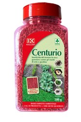 Centurio è a basso impatto ambientale grazie alla sua azione selettiva e in particolare per la bassa concentrazione del principio attivo Clorpirifos, comunemente diffuso nei normali insetticidi presenti in commercio. L'azienda ha pensato a due formati in relazione all’utilizzo del prodotto: per l’hobbista il barattolo da 500 gr o l’astuccio da 1 kg, per orti e giardini più grandi è disponibile un astuccio a bauletto da 4 kg con sessola inclusa.