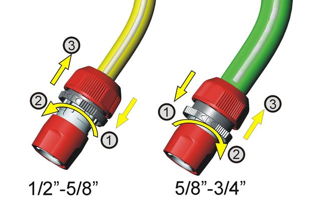 Per i tubi da giardino, già da alcuni anni sono in commercio raccordi rapidi con stringitubo cosiddetti “universali” in quanto, teoricamente, la parte stringitubo può prendere tutti i tubi con diametro minimo da ½” e massimo da ¾”, passando ovviamente per il valore intermedio da 5/8”. Ma dalla teoria alla realtà, i limiti dei raccordi “universali” sono stati fino a ora i casi estremi, cioè i diametri da ½”oppure i diametri da ¾”. In pratica i raccordi “universali” in grado di stringere correttamente tubi da ½” di modesto spessore non riescono poi a prendere i tubi da ¾” di elevato spessore, mentre i raccordi “universali” che prendono bene i tubi da ¾” di buon spessore non riescono a stringere i piccoli tubi da ½” di modesto spessore.