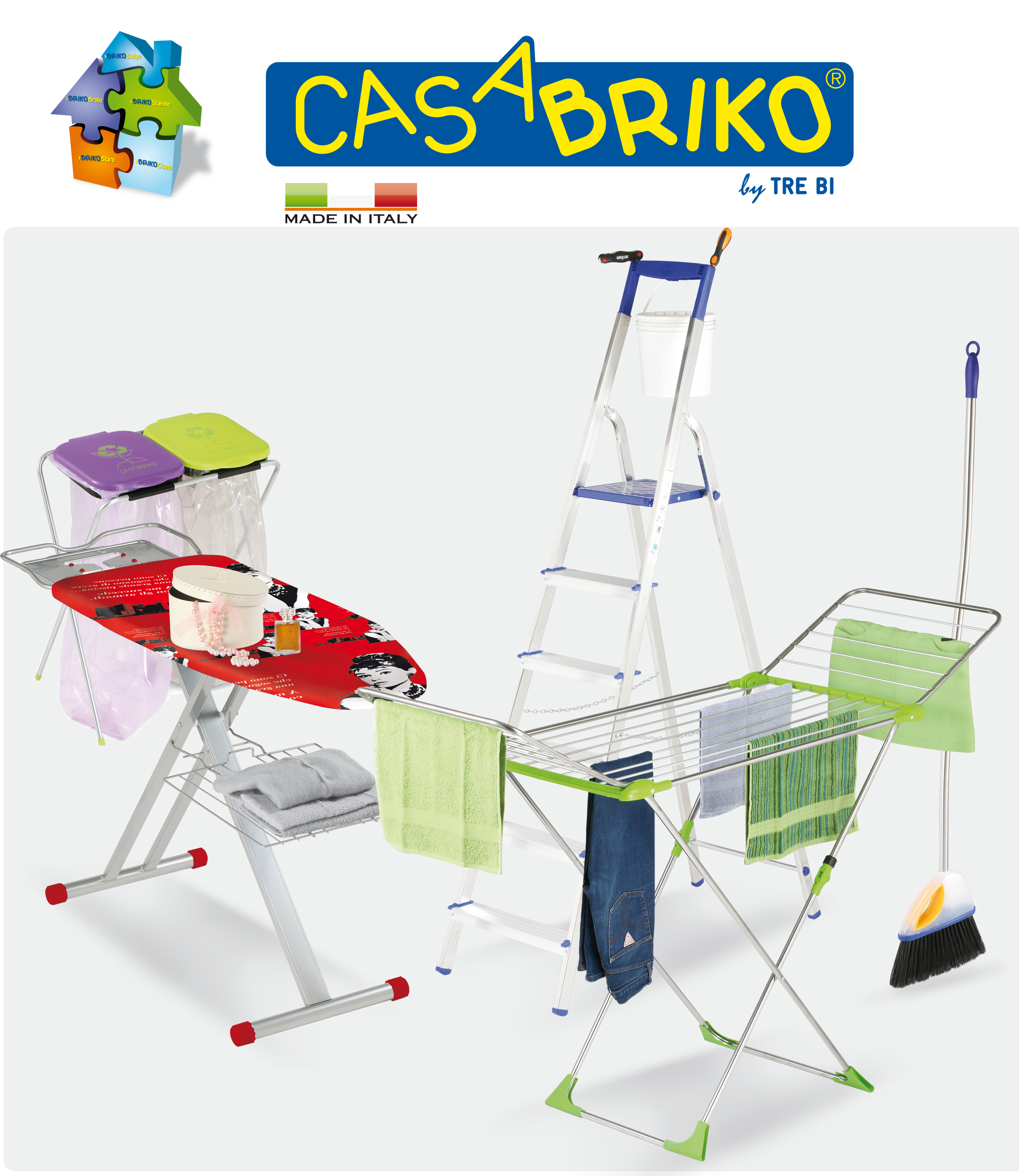 Con un’immagine fresca e rinnovata CASABRIKO by TRE BI, da 40 anni sul mercato, propone alla clientela la possibilità di scegliere tra una gamma di prodotti di elevata qualità che assicurano un’ottima durata, un design esclusivo e un ottimo rapporto qualità–prezzo. I prodotti delle linee Briko Stendo, Briko Stiro, Briko Salgo, Briko Casa, Briko Brillo vengono progettati da tecnici competenti e prodotti interamente, per la gran parte di essi, presso lo stabilimento bergamasco da personale preparato e con acquisita esperienza nel settore.