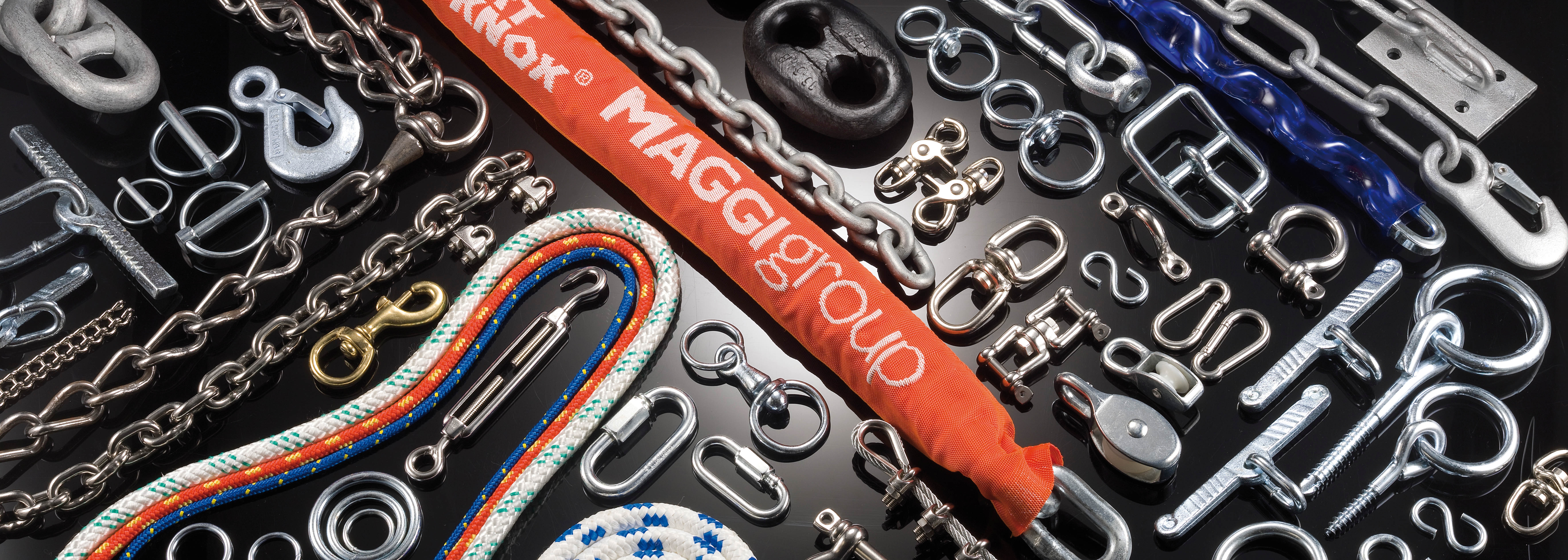 Qualità di prodotto, passione per il proprio lavoro e idee innovative sono da sempre i principi guida di MaggiGroup, specializzata dal 1925 nella produzione di catene e nella lavorazione dell'acciaio. Presente in diversi mercati (automotive, nautico, industria e bricolage), nel campo del fai da te l'azienda propone soluzioni per tutte le necessità, con un’attenzione che oggi guarda anche alle componenti ecosostenibili. L'ampia gamma include: catene metalliche e plastiche ad uso industriale e decorativo, cime e cordami, fili e cavi metallici, accessori diversi, catene di sicurezza antifurto, cintini per tapparelle e cinghie reggicarico, catene da neve.