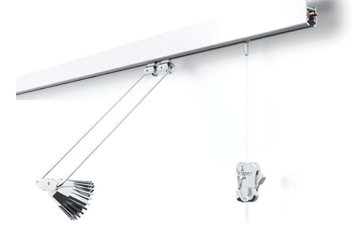 Praticamente invisibile, il sistema Stas è concepito per appendere i quadri in modo flessibile senza bucare le pareti. Si tratta di un sistema modulare che si compone di speciali guide in alluminio laccate bianche o argento satinato, nelle quali scorrono cavetti in acciaio o in nylon, a cui vengono fissati ganci con diverse caratteristiche per garantire massima flessibilità. I quadri potranno essere spostati velocemente, inserendone di nuovi, raggruppandoli per tematiche con il minimo sforzo o completamente tolti lasciando la parete come nuova senza alcun buco.
