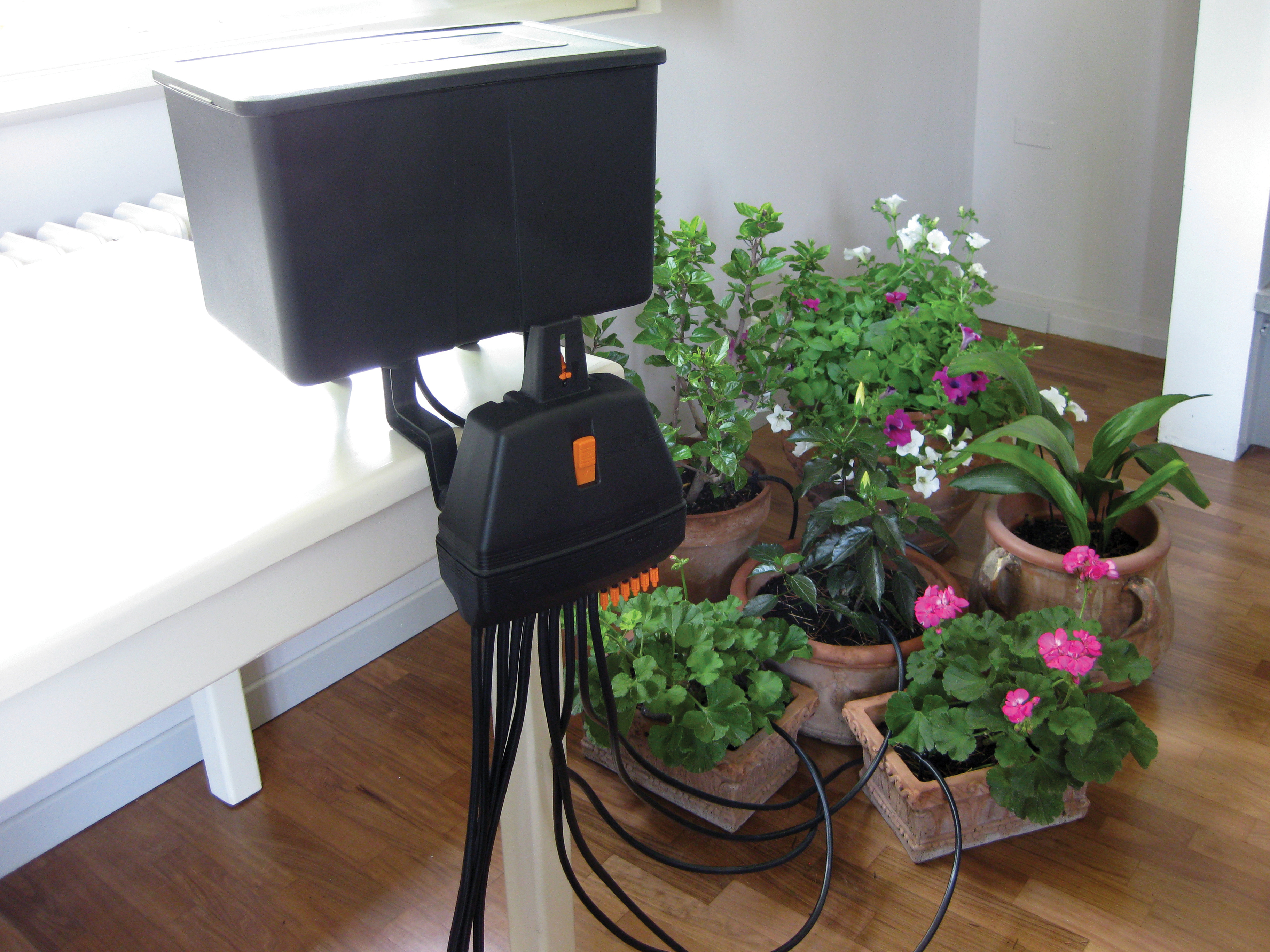 Tramite un dosatore automatico, viene erogata la quantità opportuna di acqua, sufficiente a mantenere la giusta umidità della terra. Dotato di un serbatoio da 18 litri, può distribuire da 1 a 2 litri d’acqua al giorno a intervalli precisi e regolari. Provvisto di dispositivo anticalcare, è facile da usare, comodo, e di prezzo estremamente contenuto.