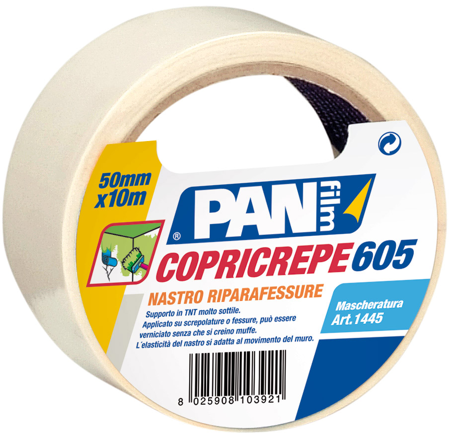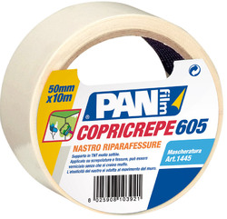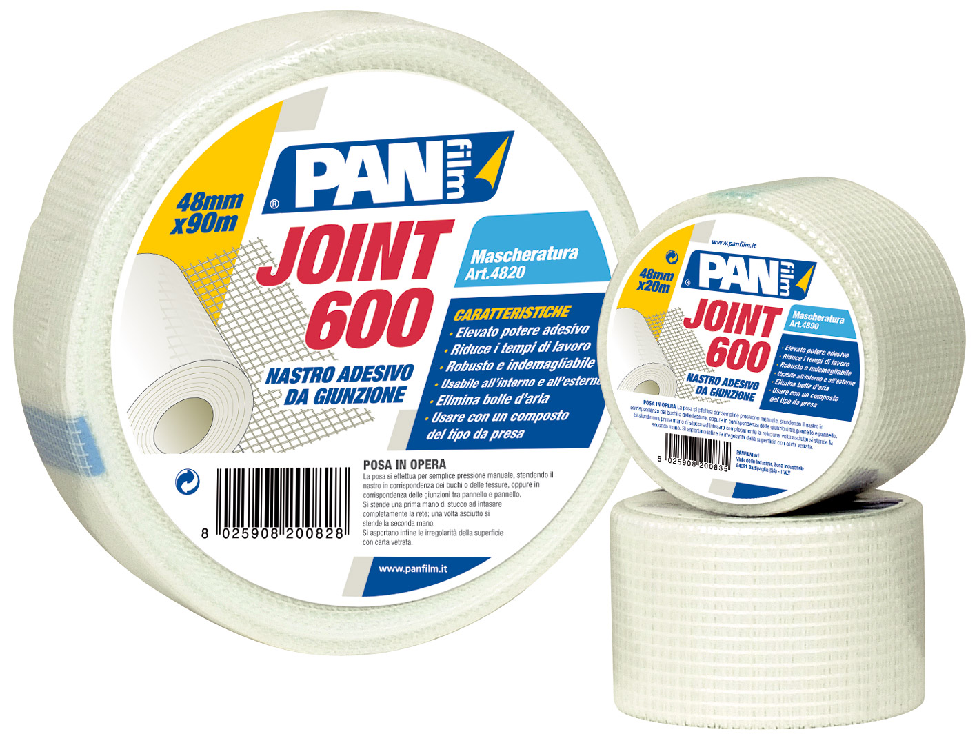 La linea Mascheratura offre un’ampia di gamma di soluzioni per proteggere le superfici all’interno o all’esterno degli involucri edilizi ed è questo il caso di JOINT 600, un nastro a rete adesiva per cartongesso. Questo speciale nastro adesivo è in fibra di vetro tessuta, trattato con apprettatura antialcalina, e si può applicare in modo rapido e facile sulle giunture dei pannelli in cartongesso. La posa si effettua attraverso una pressione manuale, stendendo il nastro in corrispondenza dei buchi o delle fessure o tra le giunzioni dei pannelli. Si stende una prima mano di stucco ad intasare completamente la rete, una volta asciutto si stende la seconda mano e si asportano quindi le irregolarità della superficie con carta vetrata. Il bassissimo spessore lo rende particolarmente adatto anche per riparare buchi e fessure nei muri. Nel caso in cui occorresse risolvere il problema di screpolature o fessure, Panfilm propone Copricrepe 605, un nastro riparafessure in TNT molto sottile, che può essere verniciato senza che si creino muffe. La sua elasticità si adatta al movimento del muro, presentando un'ottima adesività e un'alta proprietà di estensione trasversale.
