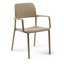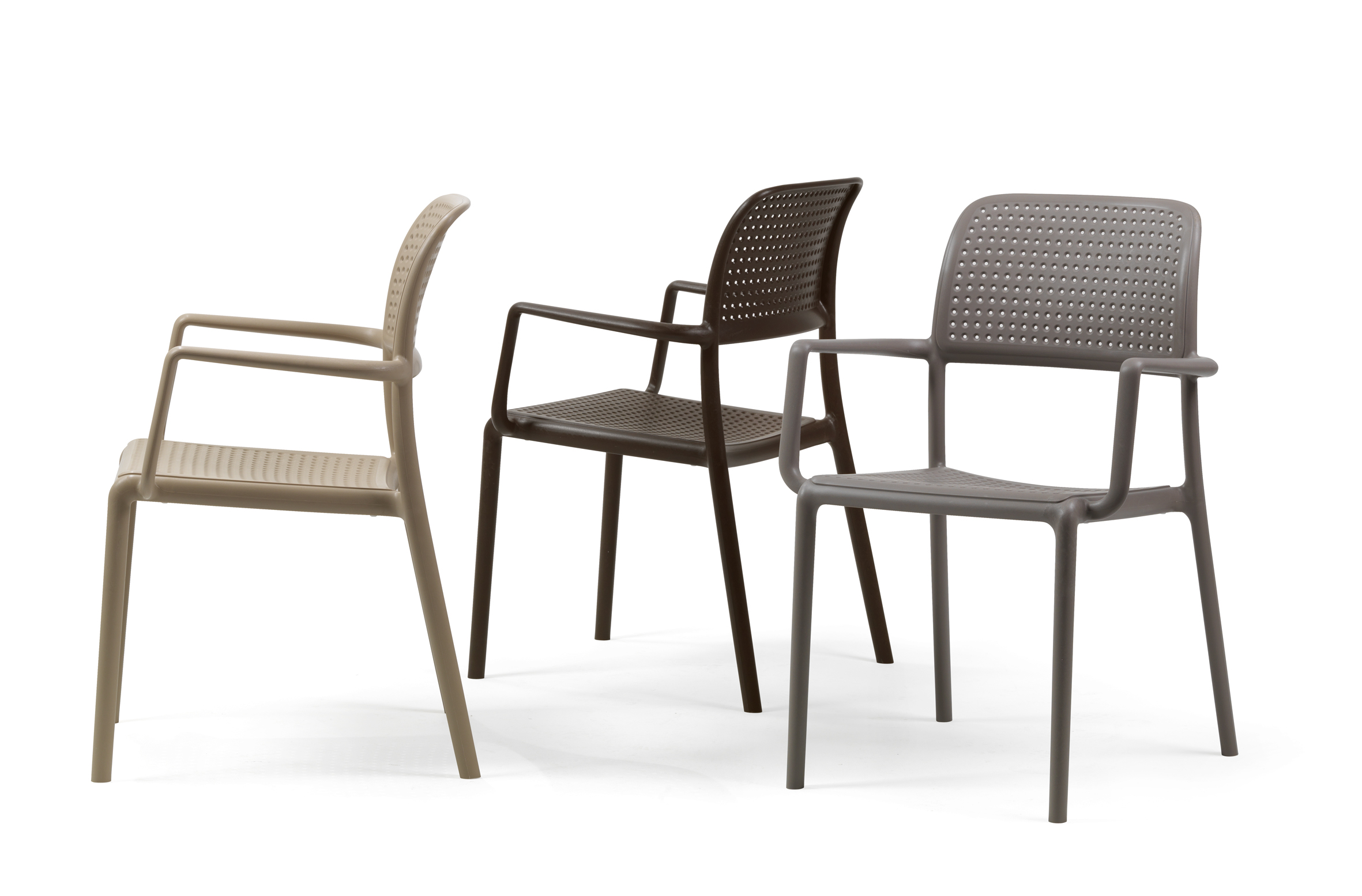 Riprende il nome di un vento, la seduta in resina proposta da Nardi, dalle linee pulite che si adattano ad ambienti outdoor e indoor. “Leggera e fresca come il vento”, ha una struttura tubolare robusta senza interruzioni, con profili e spigoli arrotondati; seduta e schienale formano un tutt'uno con la sagoma della sedia. L’alta qualità dei materiali e dei dettagli, insieme a una struttura essenziale e ricercata, fanno di Bora una seduta dal tratto forte e deciso, ma allo stesso tempo estremamente versatile. Inoltre è leggera, maneggevole e impilabile, le sue misure sono ampie e permettono un appoggio comodo e sicuro. Realizzata con resina di alta qualità atossica e antistatica,è prodotta interamente in Italia ed è riciclabile al 100%.