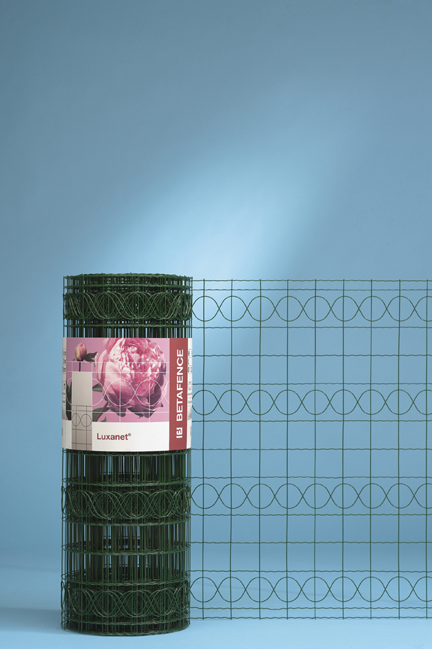 Per soddisfare l’esigenza di recinzioni per la protezione di giardini, parchi e aiuole che non rinuncino a un’estetica piacevole, Betafence ha ideato Luxanet, una robusta rete elettrosaldata dal design ornamentale. Dotata di doppio filo di vivagno all’estremità, Luxanet si caratterizza per gli speciali fili orizzontali (di diametro 2,20 mm) provvisti di una triplice ondulazione per ogni maglia; questa struttura conferisce alla rete una resistenza più del doppio superiore rispetto alle tradizionali reti elettrosaldate. Le maglie rettangolari sono inoltre abbinate a maglie tonde, a vantaggio della robustezza della rete. Per garantire un’elevata durata della recinzione, Luxanet viene zincata e plasticata in PVC. Disponibile nel colore verde muschio e in rotoli da 25 m, è presente in diverse altezze (da 41 a 142 cm). Luxanet si posa facilmente con il Palo Tondo.