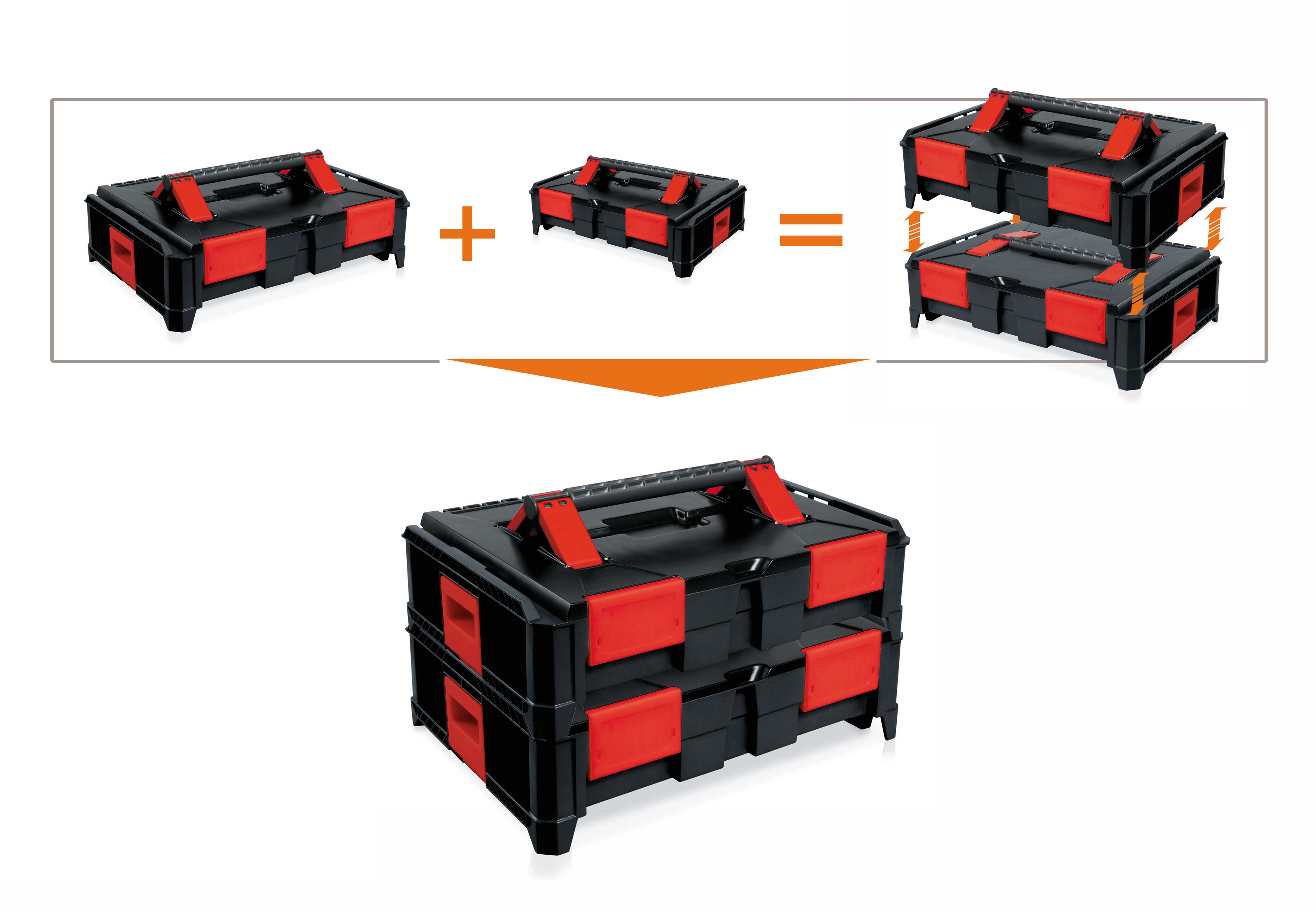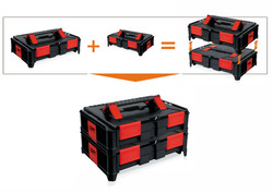 Grande novità di Smarty, BoxOnBox è il nuovo sistema di cassette portautensili modulari realizzate in ABS. Ideale per il settore professionale, per attrezzare furgoni e per tutti i prodotti che necessitano sicurezza durante il trasporto, è realizzato con strutture in materiale robusto e indistruttibile, ma soprattutto impilabili. Il sistema di aggancio laterale è brevettato, mentre la maniglia è autobilanciante (modello di design depositato presso l'UAMI, l'agenzia dell'Unione europea competente per la registrazione di marchi, disegni e modelli).