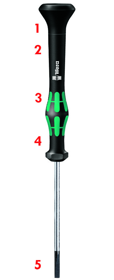 5) La punta Black Point di Wera e un sofisticato procedimento di tempra garantiscono una durata maggiore della punta stessa e una più alta resistenza alla corrosione.