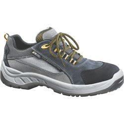 Le sue caratteristiche principali sono la microrete sintetica ad alta tenacità traspirante, la punta rinforzata in TPU, la fodera interna in Dry Pol traspirante, idrofila, antiumidità. La soletta interna amovibile è antistatica con trattamento antibatterico e la suola è in poliuretano bidensità. Per la massima sicurezza il puntale è in alluminio. La chiusura con lacci permette inoltre una perfetta adattabilità. Questo modello è in colore grigio/argento e le taglie disponibili sono comprese dalla 39 alla 47.