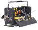 Per agevolare gli spostamenti, la borsa è dotata di un maniglione pieghevole in metallo con impugnatura in gomma, così come di una robusta tracolla per un trasporto sicuro anche in presenza di utensili pesanti.