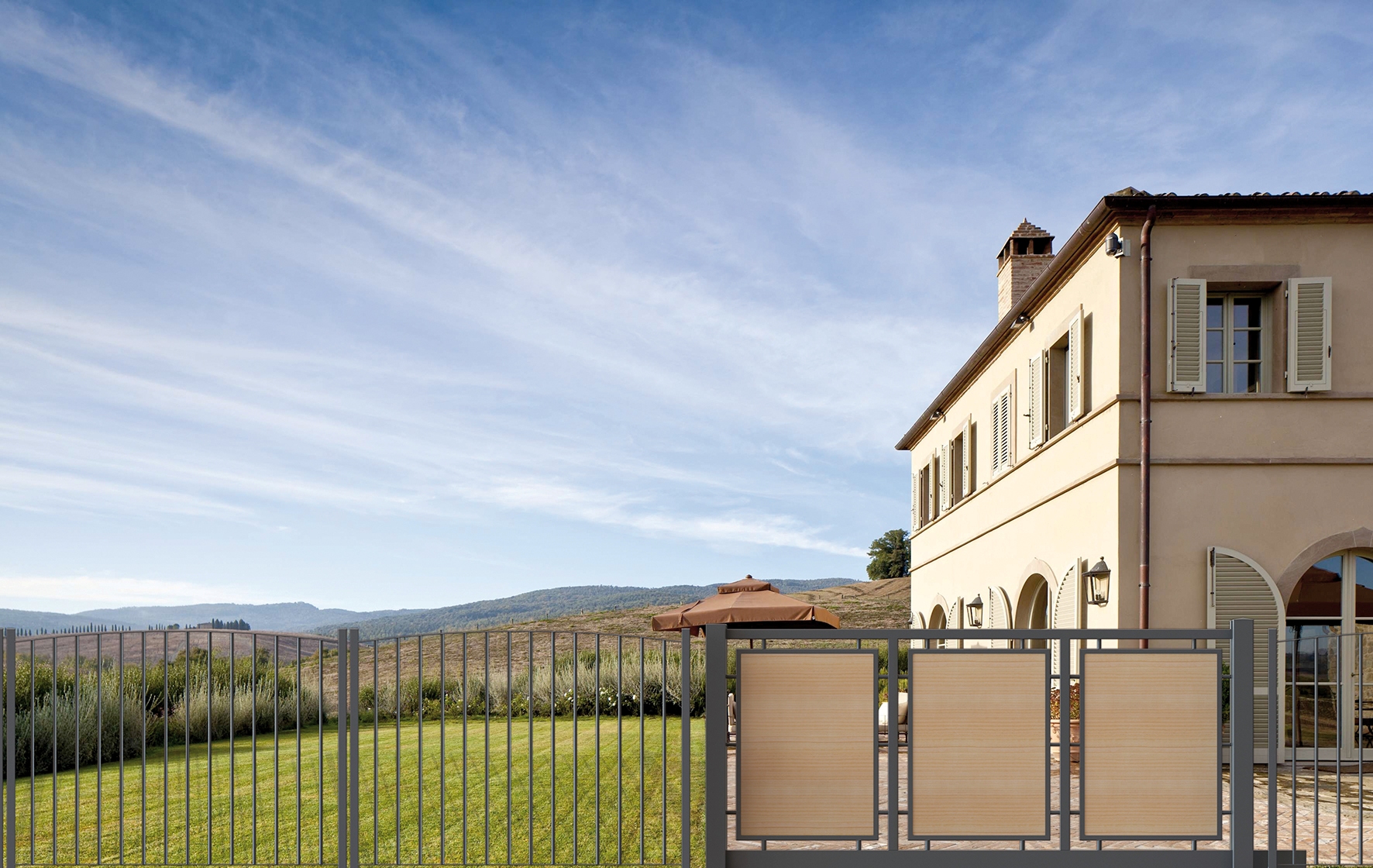 Se nella mitologia classica il Palladio era capace di difendere un'intera città, nel catalogo di Betafence la recinzione Palladio può proteggere qualsiasi contesto residenziale, adattandosi al meglio ai vari stili. Grazie alla nuova recinzione proposta dall'azienda di Tortoreto (TE), il fattore protezione non prescinde dalla piacevolezza estetica. Il pannello, infatti, classico ed elegante, è in grado di armonizzarsi perfettamente con l’ambiente circostante; il design ad arco si integra in modo ottimale con soluzioni essenziali e contemporanee. Per Palladio, la parola d’ordine è “massima flessibilità”: l’esclusivo set di fissaggio che consente un’installazione facile, veloce, completamente integrata e discreta, anche su muretto, permette di adattare la recinzione a qualsiasi situazione. Inoltre, grazie agli speciali trattamenti protettivi, la recinzione mantiene un aspetto e una funzionalità inalterati nel tempo. Disponibile in diverse altezze, il pannello Palladio presenta una larghezza standard di 2000 mm. Di serie nei colori micaceo o nero, può esser personalizzato in altri colori su richiesta. A completamento della recinzione, Betafence ha progettato il nuovo cancello Palladio, una chiusura che soddisfa al meglio le esigenze crescenti del mercato di oggi, che richiede elevato valore estetico e ampia possibilità di personalizzazione. Costruito per adattarsi al meglio ai moderni contesti residenziali, si connota per una struttura (costituita da piantane, ante e riquadro) particolarmente robusta e resistente. L’impiego dei migliori rivestimenti protettivi in poliestere, successivi la zincatura, garantisce un’elevata resistenza alla corrosione degli agenti atmosferici, rendendo il cancello durevole negli anni. Disponibile nelle versioni a battente o scorrevole su binario, pedonale o carraio, il cancello Palladio presenta una struttura in acciaio con riempimento in lamiera pre-verniciata. La specchiatura del cancello è personalizzabile con molteplici effetti e colori ed è predisposto per eventuale elettrificazione e automazione. Di serie nei colori micaceo e nero, è disponibile su richiesta in altri colori. Dotato di certificazione CE, rispetta la normativa europea EN 13241-1.
