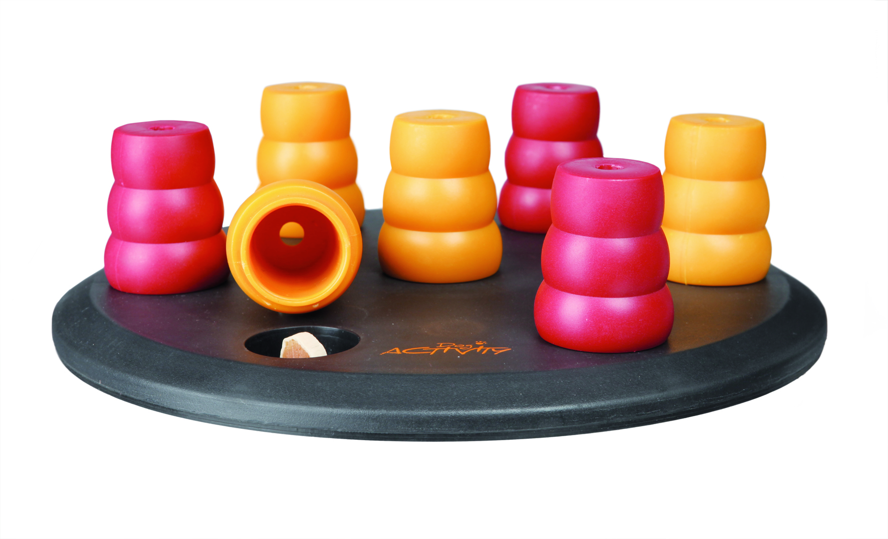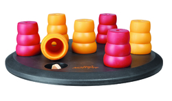 Roulette Gioco ideato da Nina Ottosson in una versione più semplice; Trixie ha aggiunto il doppio cerchio e il cambio di rotazione. Il cane deve estrarre la sua ricompensa facendo ruotare i dischi e fermandoli nella giusta posizione.