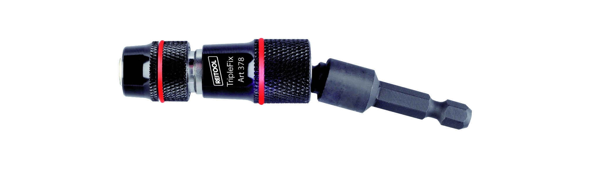 Tre le nuove proposte, iniziando dal portainserti Triplefix che ha un mandrino con attacco rapido per inserti universali da ¼” e attacco E 6,3x88 mm, che presenta un nodo sferico per avvitatore con inclinazione fino a 20 gradi per avvitare anche in punti di difficile accesso. Possibilità di bloccare lo snodo per utilizzo come portainserti tradizionale. Dispone di un magnete permanente al Neodimio (Nd) ed è prodotto a norme DIN ISO 1173 E 6,3. Il secondo è il portainserti Twin con mandrino a serraggio rapido e sistema “Twin” per inserti universali da ¼”. Con attacco E 6,3 e una lunghezza totale di 250 mm, dispone di magnete permanente e anello di tenuta fino a 2 kg/20 N/mm. Prodotto in base a norme Standard DIN ISO 1173 E 6,3. Infine il nuovo portainserti magnetico completamente flessibile Flex con mandrino a serraggio rapido flessibile per inserti universali da ¼”. Con attacco E 6,3 e una lunghezza totale di 225 mm, dispone di magnete permanente e tubo in acciaio inox. Consente di ottenere serraggi fino a 15 Nm.