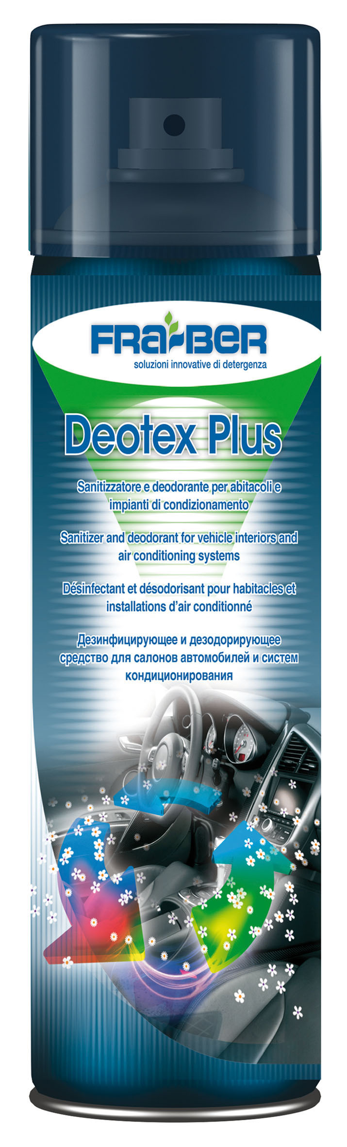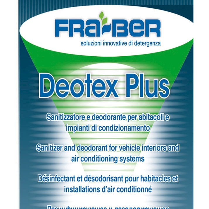 FRA-BER ha messo a punto un prodotto efficacissimo denominato Deotex Plus che sanitizza e deodora gli abitacoli di auto, camper, roulotte ma, naturalmente, anche di furgoni, camion, autobus, pullman, ambienti pubblici o domestici e condizionatori in generale. Dotato di una grande forza antibatterica e antiacaro, Deotex Plus elimina alla fonte i cattivi odori che si formano all’interno del sistema, è profumato e non macchia i tessuti o qualsiasi altra parte con il quale possa venire in contatto.