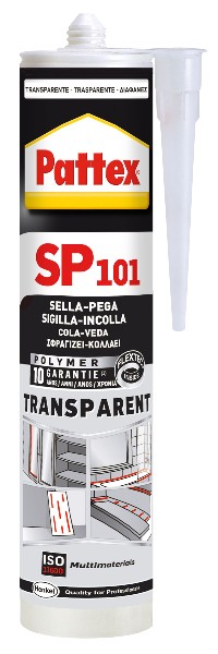 Nella gamma Pattexc’è la nuova e versatile gamma SP 101 che garantisce ottime prestazioni di sigillatura e di incollaggio sulla quasi totalità dei materiali e delle superfici e la massima resistenza alle condizioni estreme di impiego. La sua formula, basata sulla tecnologia Flextec, offre una maggiore capacità adesiva, elasticità e flessibilità estendendone il campo di utilizzo. Per diversi impieghi e materiali, questa gamma risolve i problemi dei professionisti. È disponibile nei colori bianco, nero, grigio e marrone e anche trasparente (in foto) per i lavori di incollaggio e di sigillatura che richiedono finiture invisibili. La gamma Pattex SP 101, priva di solventi, è verniciabile dopo l’uso.