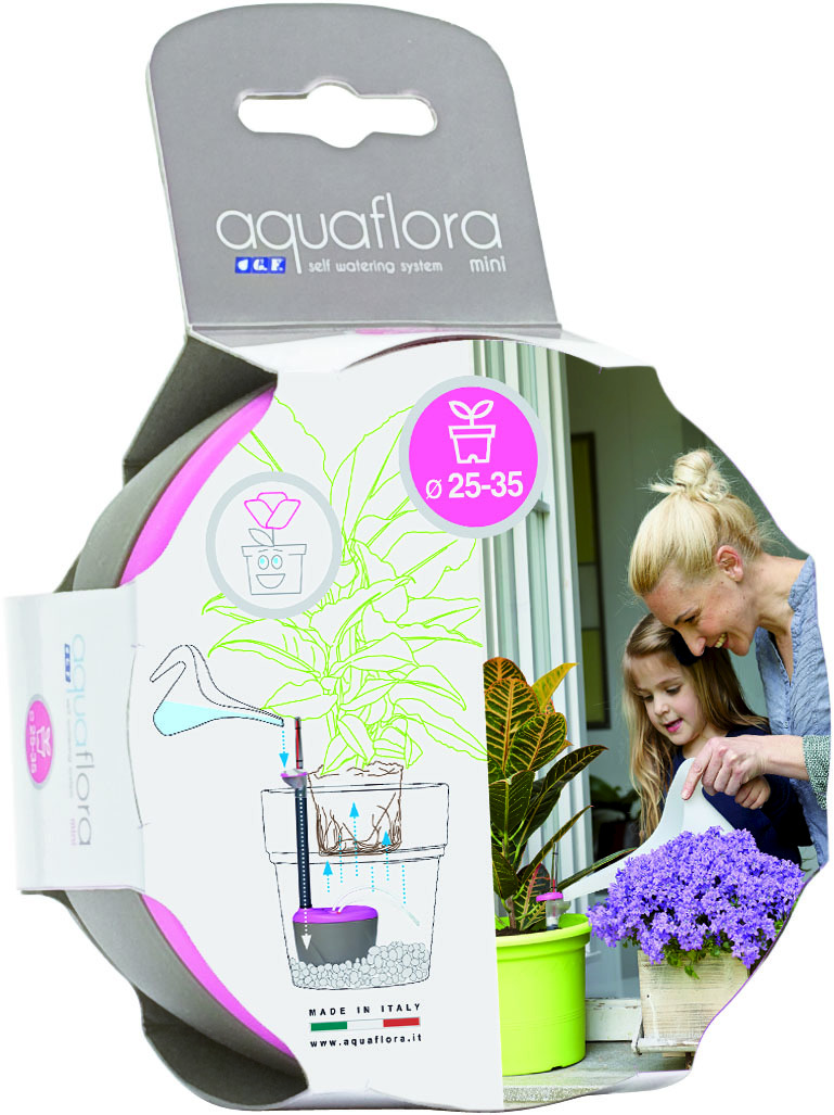 Aquaflora di G.F. è un sistema di irrigazione a riserva d’acqua per piante in vaso che consente di irrigare facilmente e in modo naturale. Il benessere della pianta è assicurato dall’autoregolazione: Aquaflora mantiene umido il terreno per un periodo più lungo rispetto alla tradizionale irrigazione e soprattutto è la pianta a decidere quando assorbire l’acqua e in quali quantità, evitando in tal modo errori di innaffiatura che possono danneggiarla e consentendo di ridurre notevolmente la frequenza d’irrigazione. L’indicatore di livello avvertirà quando è necessario riempire nuovamente il serbatoio, mantenendo la corretta umidità del terreno a seconda delle caratteristiche e dimensioni della pianta. Disponibile in due versioni (per vasi dal diametro di 25-35 cm nella versione mini, dal diametro di 35-50 cm nella versione maxi), Aquaflora è costituito da un serbatoio d’acqua (capienza 0,7 litri nella versione mini e 1,4 nella versione maxi). Aquaflora è adattabile a vasi di diverse forme e può essere utilizzato sia per piante in vaso da interno che da esterno; con una semplice operazione di invaso, in pochi minuti ogni vaso può essere predisposto per un utilizzo immediato. Aquaflora è utilizzabile per le successive operazioni periodiche di rinvaso di tutte le piante della nostra casa.