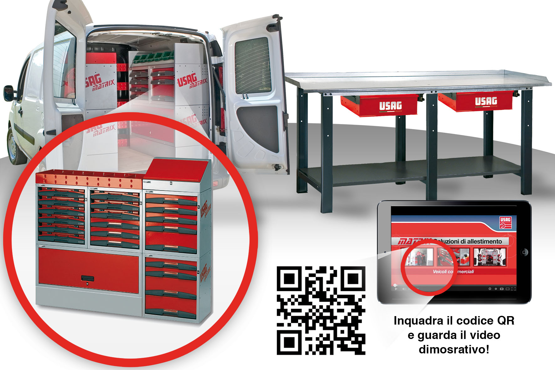 Le novità di prodotto per il 2014 in Usag riguardano l’implementazione della gamma Matrix, il funzionale sistema modulare di allestimento per furgoni e veicoli commerciali e la gamma dei banchi da lavoro. Nel 2013 la gamma Matrix ha presentato innovazioni come i moduli da 742 mm, di una lunghezza “intermedia” rispetto alle misure standard di 495 mm e 990 mm, che permettono una gestione ottimizzata delle superfici interne dei veicoli e, quindi, ulteriori molteplici soluzioni di allestimento. Si aggiungono le cassettiere da 2 a 5 cassetti di diverse dimensioni, le basi passaruota, i ripiani inclinati, i ripiani porta vaschette e i separatori. Per quanto riguarda la gamma dei banchi da lavoro è stata di recente innovata ed è composta da 6 banchi con tre diverse dimensioni: 1 metro, 1 metro e mezzo, 2 metri di lunghezza che possono sopportare rispettivamente 1.000 kg, 1.500 kg e 2.000 kg di carico sul piano di lavoro. In attesa delle novità 2014, alcuni modelli della gamma Matrix (5006 C5 e 5006 C4) e dei banchi da lavoro (501 E2C 2000 - 501 E2 1000, 1500 e 2000) sono stati inseriti nella promozione “Autumn Action 2013” che propone numerosi articoli a prezzi vantaggiosi fino al 31 dicembre.