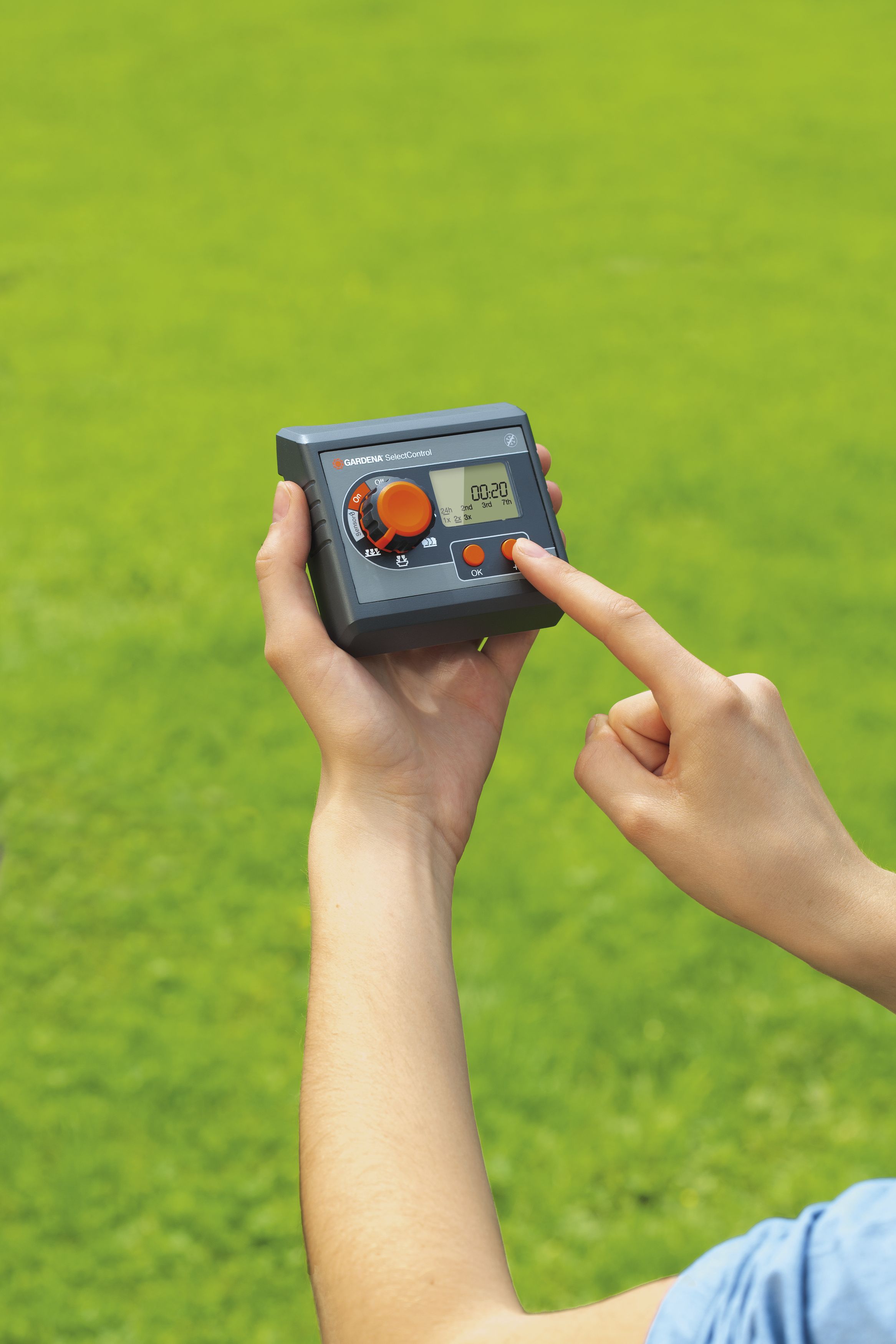 Il nuovo computer per irrigazione SelectControl di Gardena, è studiato per garantire prestazioni professionali mantenendo una particolare versatilità e facilità di utilizzo. Questo modello è dotato di programmi specifici per 5 differenti applicazioni: prato, orto, aiuola, piante in vaso e siepi. Dotato di un ampio display per una chiara visione dei dati, il frontalino è estraibile garantendo una programmazione comoda; per un risparmio d’acqua garantito, può essere collegato al sensore di pioggia o al tester d’umidità Gardena che consentono di interrompere l’irrigazione quando superfluo. SelectControl consente un’irrigazione regolabile da 1 minuto a 2 h 59 minuti, con una frequenza di 24 h oppure 2, 3 e 7 giorni per un massimo di 3 volte al giorno.