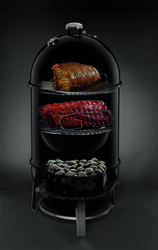 Sono tre le dimensioni tra cui scegliere per il modello Smokey Mountain Cooker, il barbecue a carbone di Weber: diametro 37-47-57 per preparare fino a 24 coperti. Le caratteristiche sono: 2 griglie di cottura in acciaio nichelato triplo spessore, 4 valvole di ventilazione in alluminio; impugnatura in nylon rinforzato in fibra di vetro, braciere e coperchio in acciaio smaltato, termometro integrato, sportello anteriore. La garanzia per coperchio e contenitore è di 10 anni; per la griglia di cottura (contro la perforazione) è di 2.