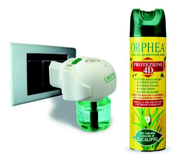 Emanatore elettrico con sensore di attivazione notturna: grazie a un particolare ed esclusivo dispositivo crepuscolare, l’attivazione dell’emanatore è automatica nelle ore notturne quando le zanzare prediligono colpire. Questo diffusore consente un utilizzo più efficiente con un conseguente risparmio di prodotto e di corrente elettrica. Orphea Protezione 4D di Tavola è un insetticida universale adatto per gli ambienti esterni e interni della casa, studiato per proteggere da tutti gli insetti volanti con un’efficacia di 8 ore e da quelli striscianti per 3 settimane. Ideale per balconi e davanzali, è capace di creare una potente barriera invisibile. La formulazione con estratto di eucalipto è la sua caratteristica di distinzione, non macchia e permette di spruzzarlo tranquillamente sulle superfici porose come il legno e su quelle impermeabili come il gres porcellanato.