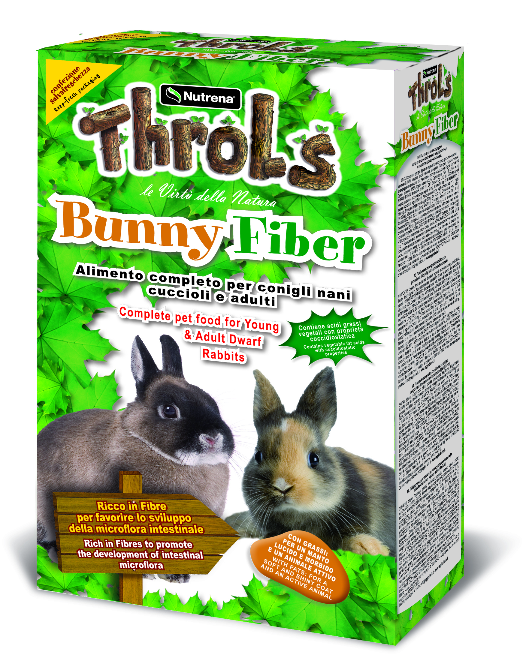 Anche i conigli nani necessitano particolari attenzioni nutrizionali per la una corretta e sana crescita: Throls by Nutrena presenta Bunny Fiber e Bunny Fit due alimenti specifici per questi piccoli animali. Bunny Fiber, grazie alla speciale formulazione ricca di fibre altamente digeribili, riduce la frequente possibilità di problemi gastrointestinali e favorisce lo sviluppo della microflora intestinale. È ideale anche per prevenire calcoli renali e garantire la salute delle vie urinarie. Bunny Fit è un alimento sano e bilanciato per la corretta crescita del coniglio nano, dallo svezzamento fino all’età adulta. Arricchito con carota, erba medica, principi naturali quali oli essenziali, carbone vegetale ed estratti di piante, garantisce il benessere e la salute dei conigli, rimanendo sempre appetibile, nutriente e leggero. Entrambi i mangimi sono integrati con vitamine, minerali ed amminoacidi (come Lisina e Metionina) per favorire un pelo sempre folto e lucente.