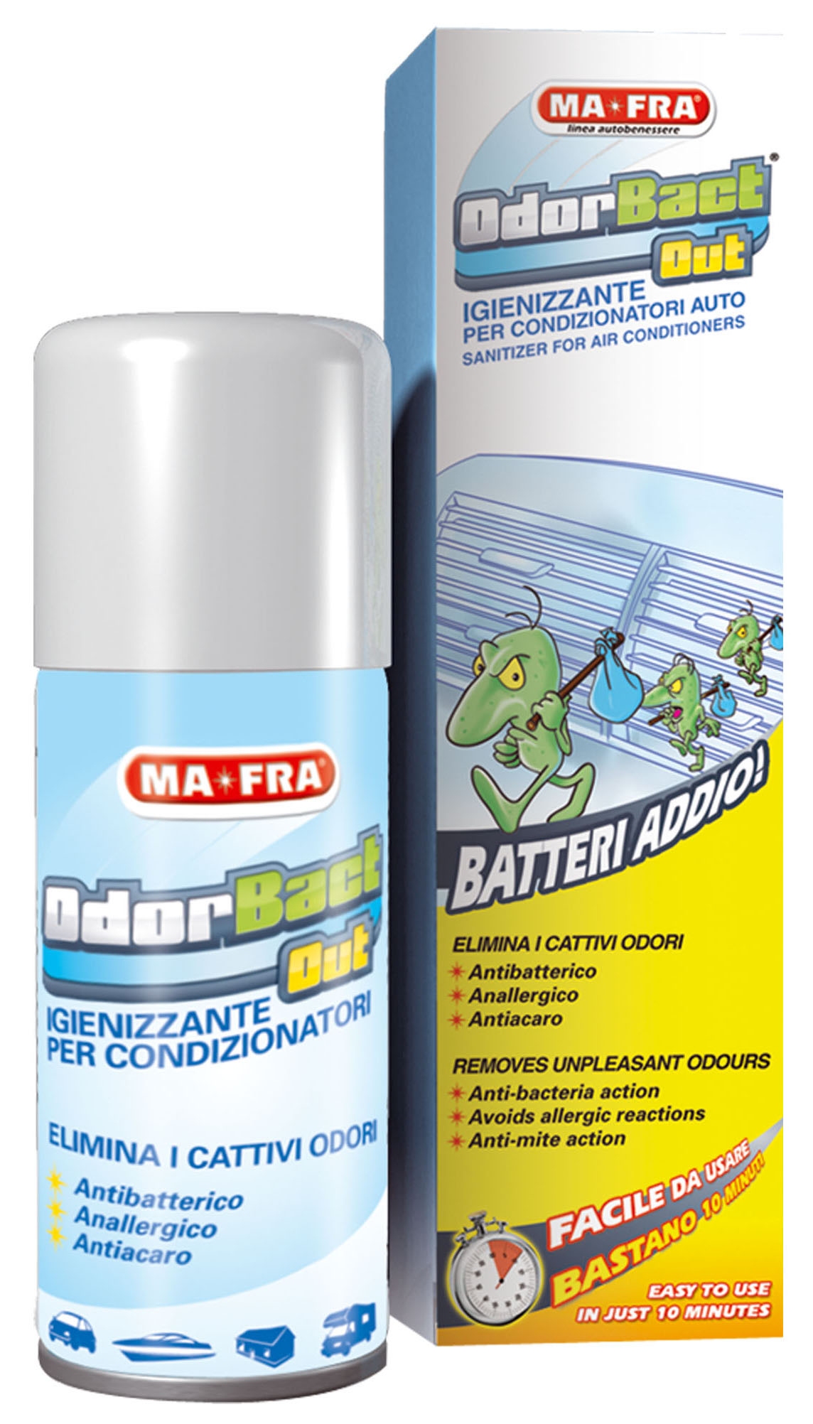 Stop a muffe e batteri causati dal condizionatore dell’auto grazie a Odorbact Out, il prodotto realizzato da Ma-Fra il cui utilizzo regolare evita il fastidioso odore dovuto alle impurità che si formano nel condotto di aerazione dell’abitacolo auto. Un trattamento con Odorbact Out igienizza l’intero abitacolo in poche mosse. Si inizia con la messa in moto dell’auto e la contemporanea accensione del condizionatore nel quale deve essere inserita la funzione di ricircolo dell’aria. La ventilazione deve essere regolata al massimo, con tutte le bocchette aperte. La bomboletta deve esser posata sul pavimento lato passeggero, avendo cura di non dirigere il getto verso il cruscotto. Successivamente bisogna premere il tasto di erogazione fino al blocco della valvola. Si esce, poi, dall’abitacolo e si richiude lo sportello avendo cura che anche i finestrini siano perfettamente chiusi. Una volta svuotata la bomboletta, bisogna lasciare il motore acceso per altri dieci minuti circa, poi si apre e si area l’interno dell’auto prima di riprendere la marcia. Odorbact Out è in vendita in bombolette da 150 ml.