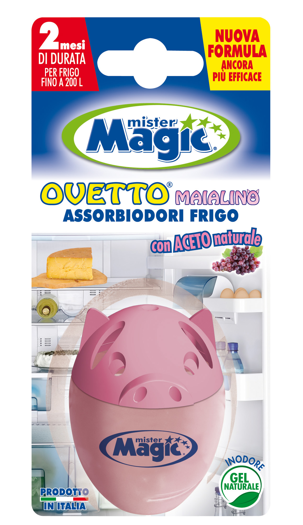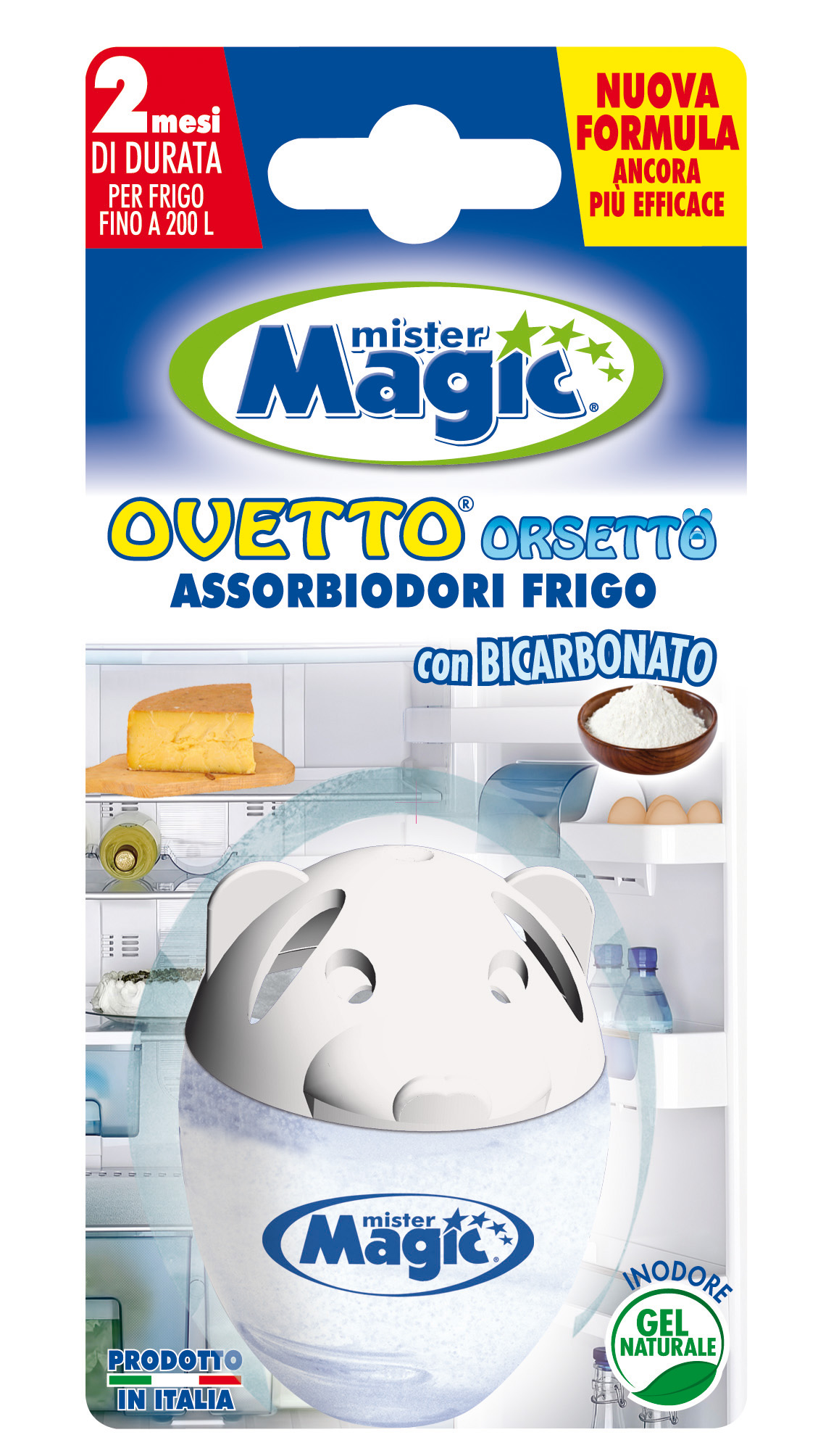 Si amplia la linea di assorbiodori per frigorifero Mister Magic con i modelli Orsetto e Maialino, che si aggiungono a Pulcino, al limone. Piccoli ma efficacissimi, il primo è con bicarbonato, mentre il secondo con aceto naturale. In quanto assorbiodori, si mantiene inalterato il gusto e l’aroma dei cibi, ma si eliminano quelli più “intensi” come per esempio il pesce, il formaggio o la cipolla. Inserito comodamente nell’apposito comparto, sono assicurati due mesi di freschezza per un frigorifero di capienza pari a 200 litri. E per sostituirlo è sufficiente controllare l’interno, in quanto il pack è trasparente e il rispettivo segnale di esaurimento posto sullo stesso avvisa quando è necessario cambiarlo.