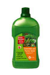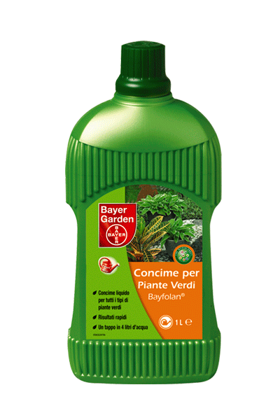 Bayfolan piante verdi di Bayer Garden è il concime minerale in formulazione liquida, contenente azoto, fosforo e potassio (NPK) e arricchito di microelementi. Grazie al suo alto titolo in elementi nutritivi, alla qualità delle materie prime utilizzate e all’elevato contenuto in microelementi, è in grado di fornire risultati sorprendenti. Bayfolan piante verdi è il prodotto specifico per le piante verdi da interno ed esterno, che permette una colorazione intensa e un ottimo sviluppo vegetativo. L'utilizzo è molto semplice: Versare un tappo misurino in 4 litri d'acqua e quindi annaffiare normalmente in maniera omogenea. Concimare ogni 7 giorni durante la primavera e autunno; durante l'estate e l'inverno concimare ogni 14 giorni.