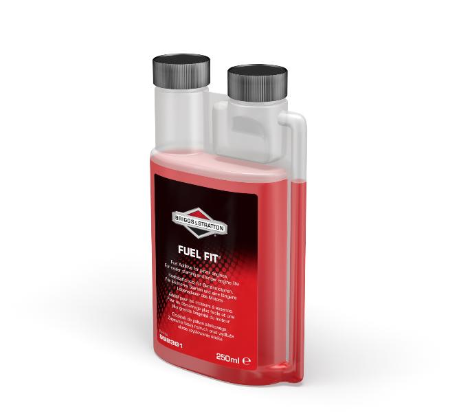 Il nuovo additivo stabilizzante per benzina verde (o Fuel Fit) di Briggs&Stratton è un prodotto particolarmente utile quando la benzina o la miscela rimangono per lungo tempo nella tanica di scorta e possono deteriorarsi: è un de-attivatore metallico che ferma le reazioni chimiche causate dai metalli disciolti nel carburante, con una nuova e migliorata formula.