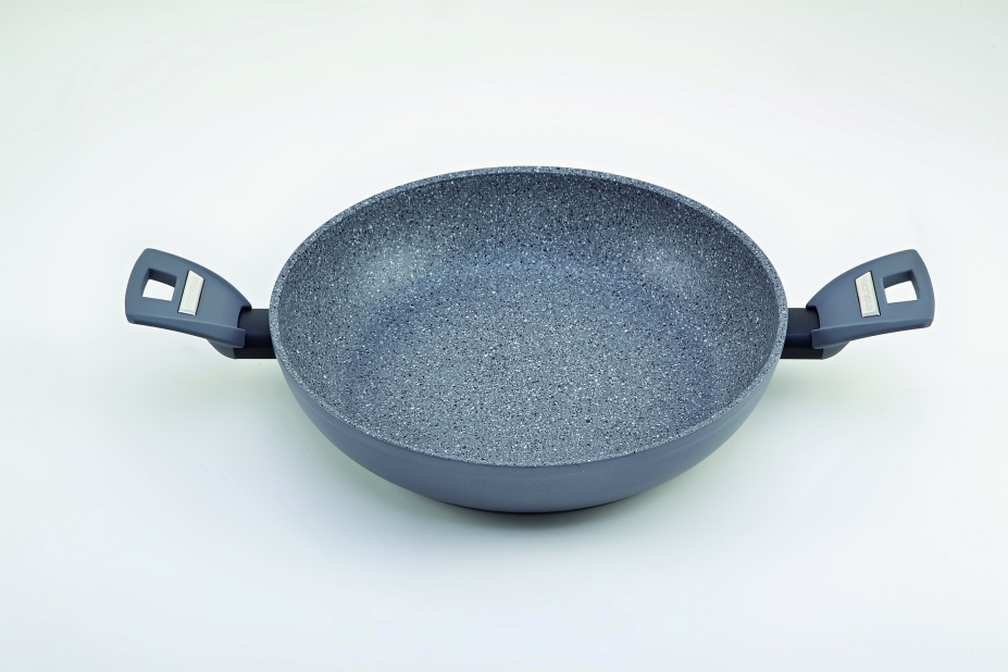 È un mix di forza e morbidezza Testudo by Moneta: dura come la pietra per un look effetto pietra, addolcito dal grigio perla dello smalto satinato esterno e “ammorbidito” dai manici soft touch. La sua resistenza è dovuta al rivestimento a triplo strato rinforzato con particelle minerali Artech®Stone, che preserva la pentola dai graffi degli utensili, dalle abrasioni dei detersivi e dall’usura del tempo. La sua durata è anche rafforzata dalla presenza dell’eco-dispositivo di risparmio energetico Energysaver® che evita alla pentola inutili sbalzi termici e consente di non rovinare le fibre degli alimenti e non scottarsi. Sono a disposizione: padella ø 20-22-24-26-28-30 cm, wok ø 28 cm, casseruola 2 maniglie ø 20 e 24 cm, tegame 2 maniglie ø 24 e 28 cm e casseruola 1 manico ø 16 cm.