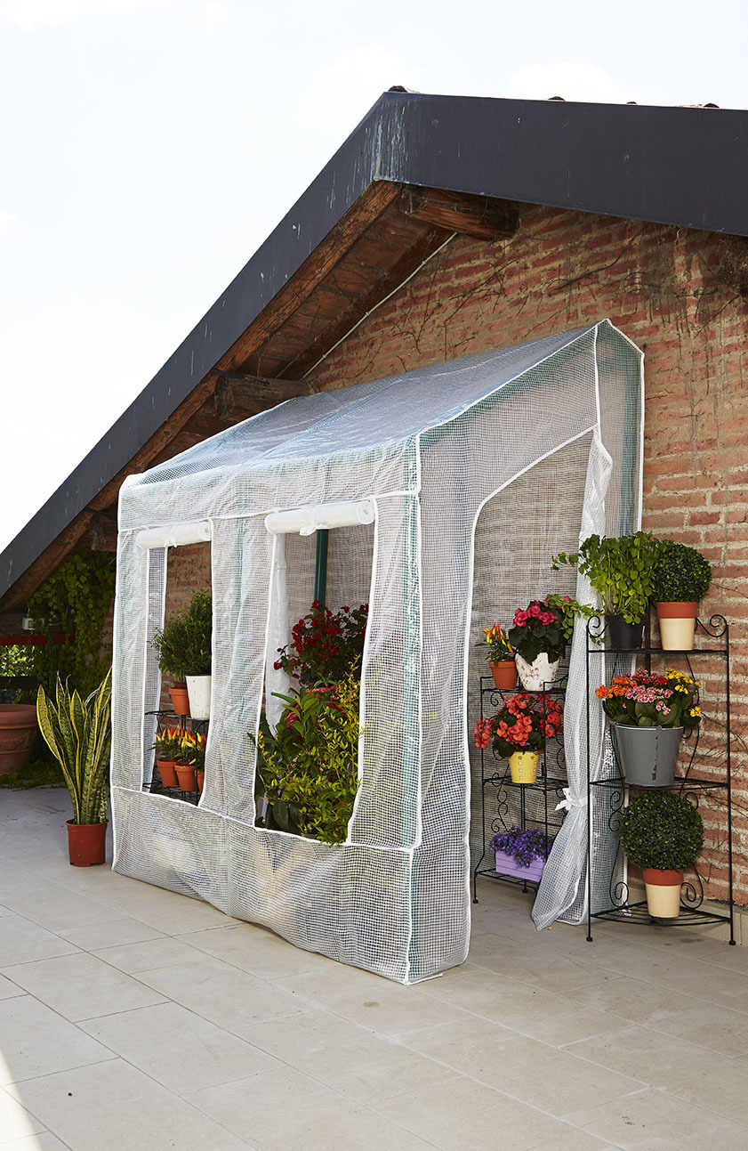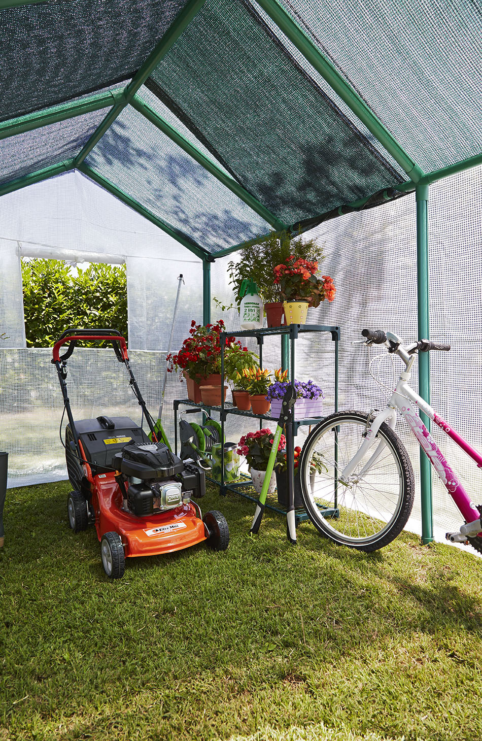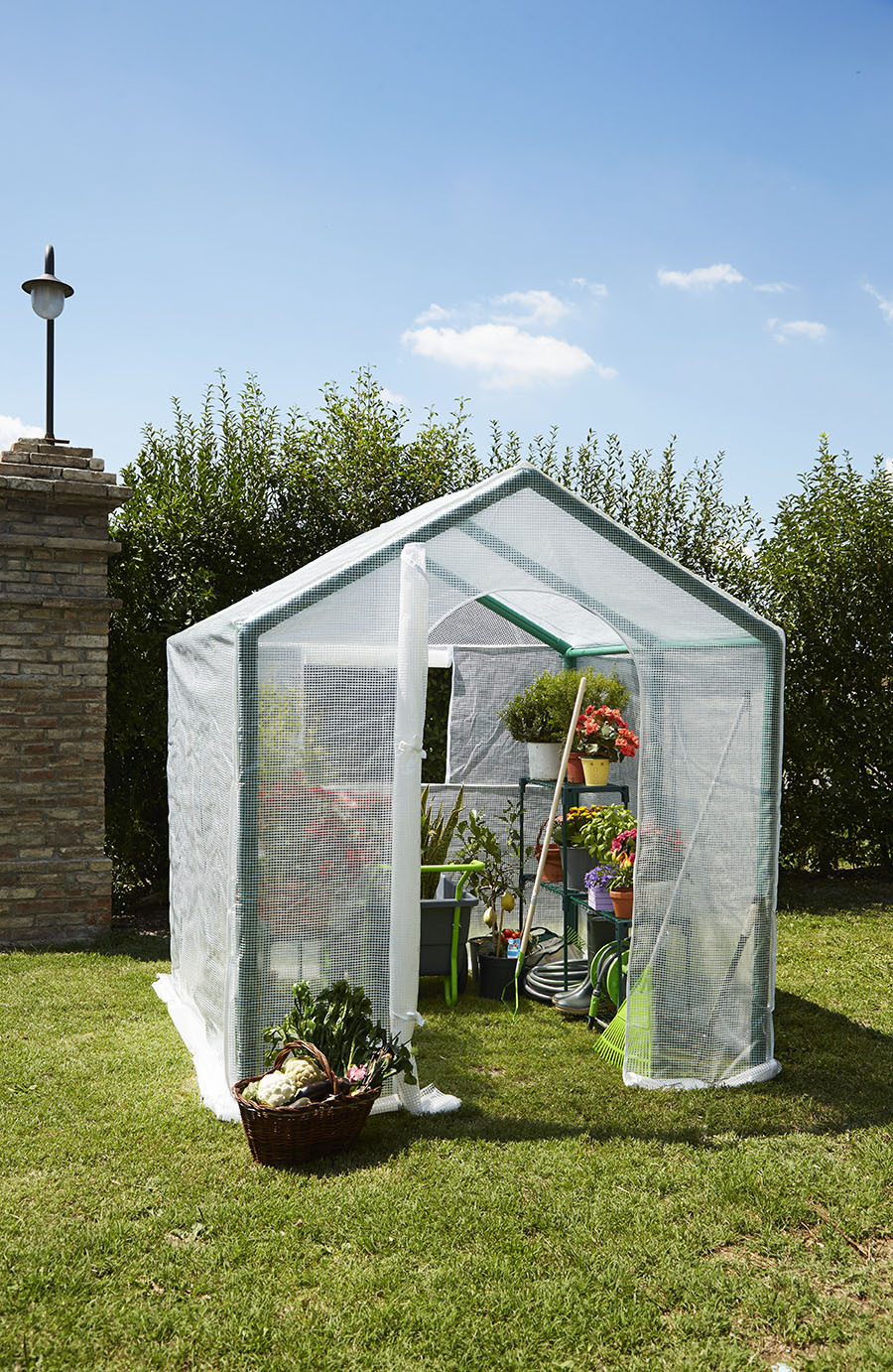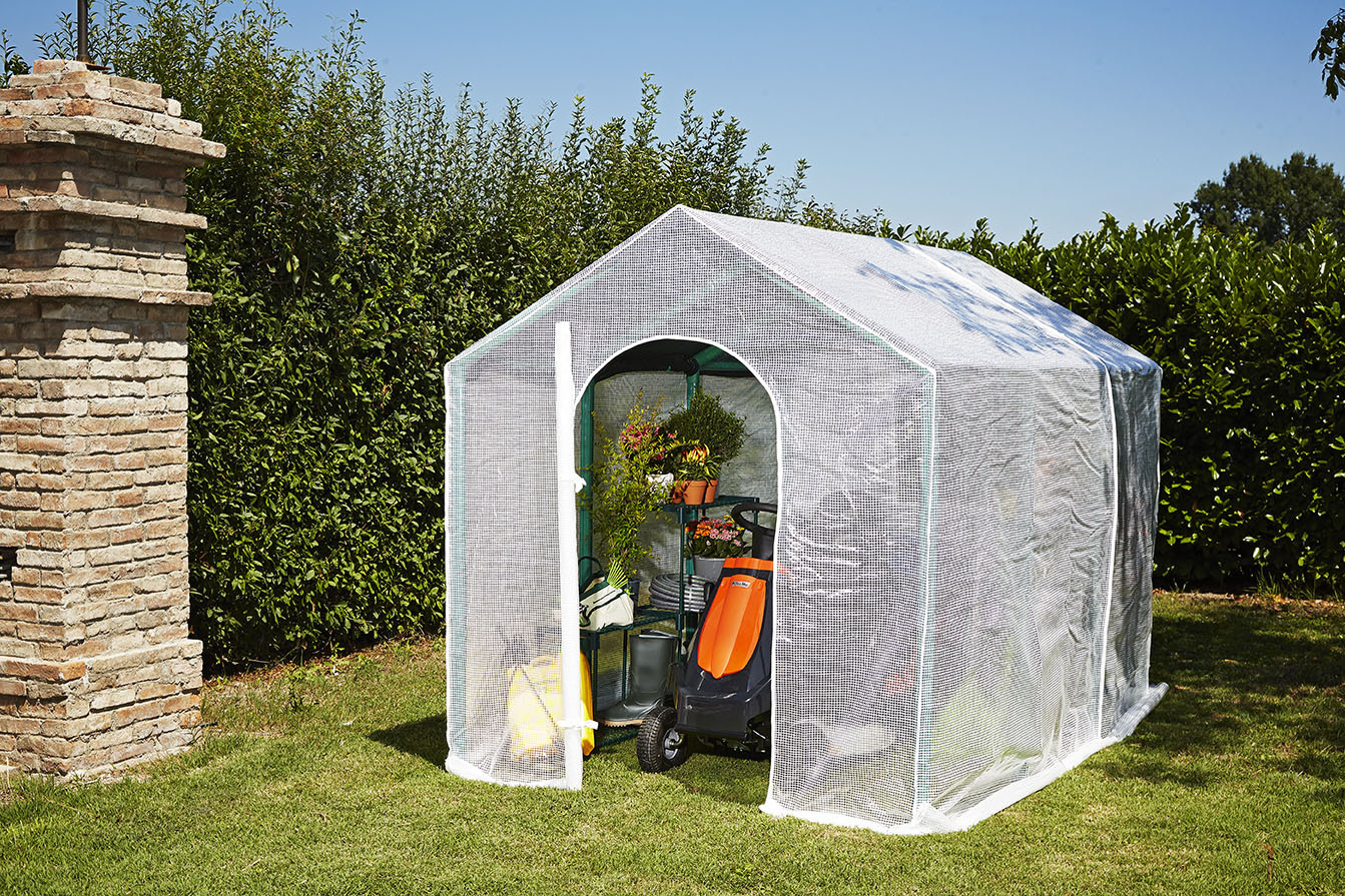 Ideale per proteggere piante e fiori nei mesi invernali, per coltivare ortaggi e piantine in semenzaio, per riporre il rasaerba e altri attrezzi da giardino.