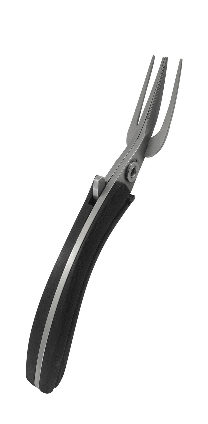 Grazie a uno speciale sistema tecnologico, si può adoperare Freehand chiuso come forchetta oppure, tenuto aperto, come coltello.