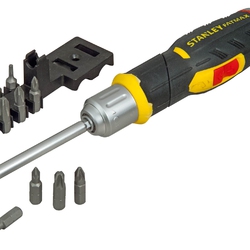 Novità sono state inserite nel catalogo Stanley tra cui i giraviti porta inserti a cricchetto Fatmax. Nelle versioni a pistola, nano e standard, questi giraviti soddisfano tutte le esigenze degli utilizzatori, grazie alla velocità e semplicità d’uso. Massimo comfort e presa ottimale sono assicurati dalla grande impugnatura morbida che consente una maggiore torsione. All’interno dell’impugnatura si trova uno scomparto con 12 inserti per la versione standard e a pistola e con 6 inserti per la versione nano. In foto, il modello FMHT0-62691. Cricchetto a tre posizioni: destra, sinistra e fisso, a 40 denti che assicura un livello di serraggio molto alto; alloggiamento degli inserti nell’impugnatura; è fornito con 12 punte (standard mm 5 - 6.5 e 8 – Phillips PH1 - PH2 e PH3 - Pozi PZ1 - PZ2 e PZ3 – Torx T10 – T15 e T20).