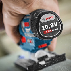 Sono tre le caratteristiche che i professionisti ricercano: utensili compatti, potenti e con la massima autonomia possibile. Bosch Professional offre batterie da 2,5 Ah per utensili professionali da 10,8 Volt con il 25% di durata in più rispetto alle batterie da 2,0 Ah finora impiegate. Inoltre, le nuove batterie sono le più compatte della loro categoria e dispongono anche della maggiore concentrazione di energia in rapporto al proprio peso: sono grandi, infatti, quanto le precedenti batterie da 2,0 Ah e con lo stesso peso (185g). L'impiego della batteria da 2,5 Ah nei leggeri e maneggevoli utensili da 10,8 Volt permette un netto incremento della produttività. Inoltre, grazie al collaudato sistema "Flexible Power System", la compatibilità delle batterie da 2,5 Ah e 10,8 Volt è garantita con tutti gli elettroutensili e i caricabatterie della gamma Bosch Professional, con la stessa classe di tensione.