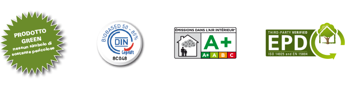 - Classe di emissione A + (secondo la direttiva VOC francese)