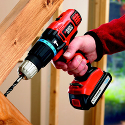 Trapano/avvitatore a percussione Black & Decker, a batteria litio 18V, modello EGBL188K-QW. Caratteristiche: azione a percussione: 20.250 colpi/min; 2 velocità meccaniche: 0-400 / 0-1350 g/m; 11 regolazioni serraggio; torsione 17/38 nm; batteria a slitta al litio 18V – 1,3 Ah; tempo di ricarica: 3 ore; mandrino autoserrante: 10 mm; max. capacità di foratura: su metallo 10 mm, legno 25 mm, muratura 10 mm.