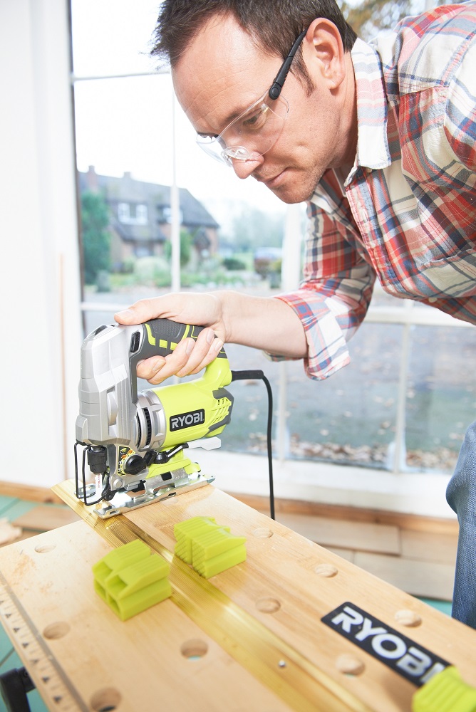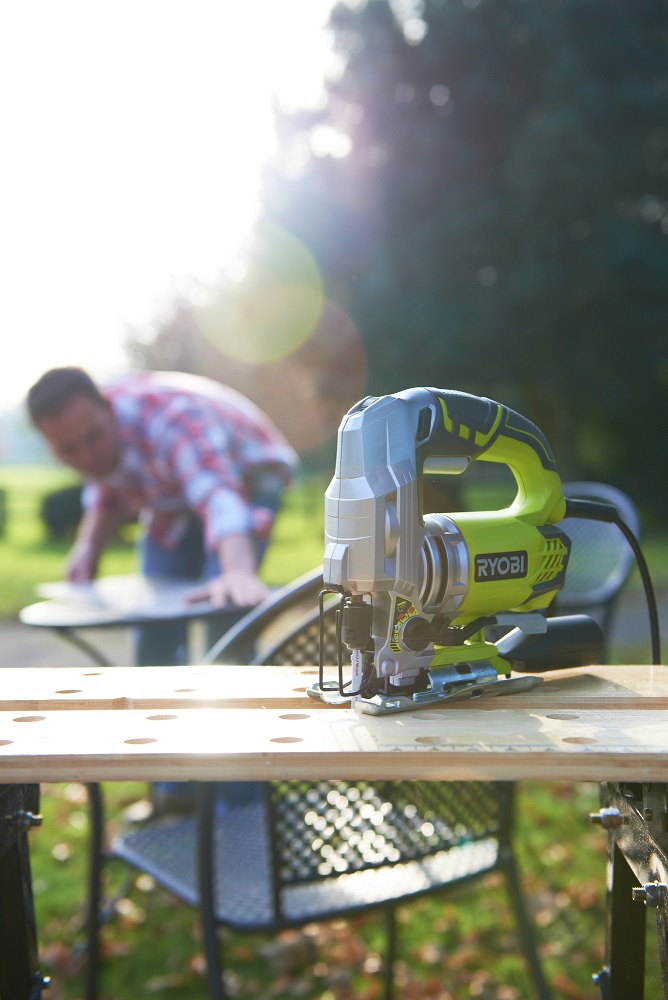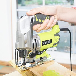 Seghetto pendolare modello RJS1050-K di potenza 680W Ryobi Tools. Caratteristiche tecniche: 4 posizioni di taglio; corsa della lama 23 mm; velocità a vuoto 500-3100 corse/min; massima capacità di taglio: legno 105 mm, metallo 12 mm; peso 2,10 kg. È possibile la sostituzione rapida della lama senza l’ausilio di attrezzi con sistema “Sure Lock”.