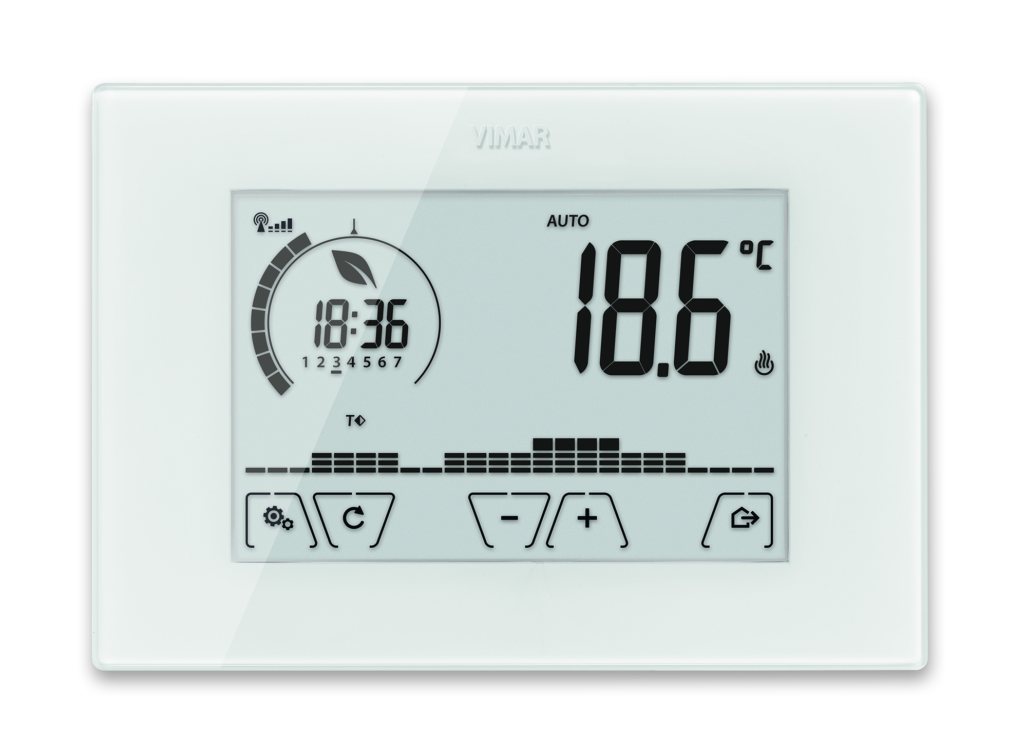 Tra gli ultimi inserimenti nel catalogo Vimarc’è il nuovo cronotermostato con Wi-Fi integrato, studiato per coloro che da remoto vogliono controllare il clima nei diversi ambienti della propria abitazione.