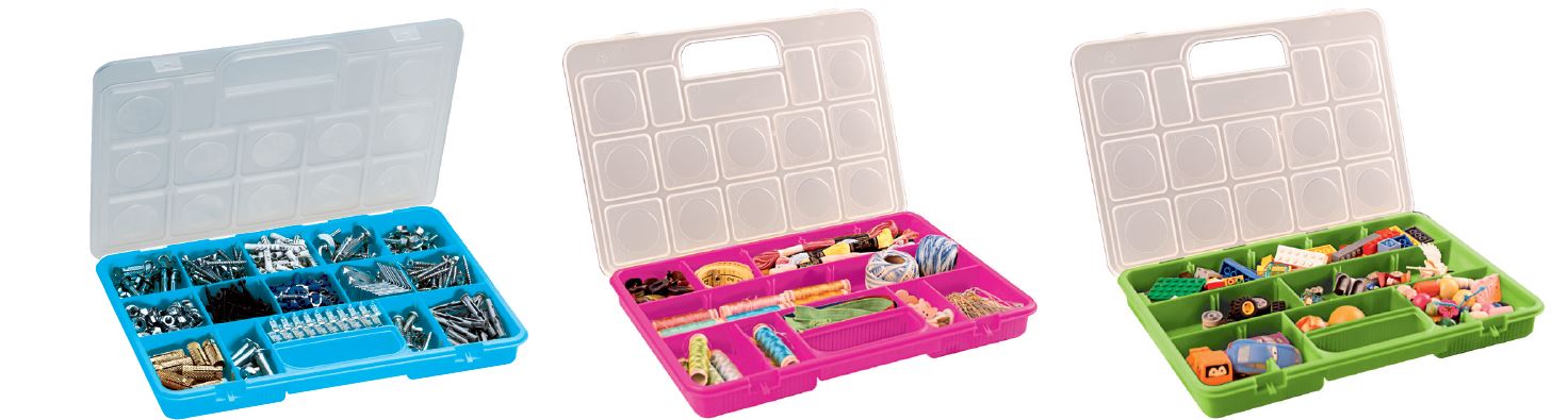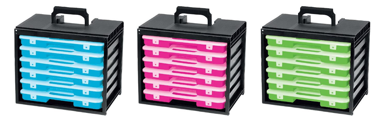 Azzurro, rosa e verde sono i colori che rendono più piacevoli le nuove cassette e portaminuterie dedicate all’hobbistica, che arricchiscono la linea Colours Di Martino. Arka 301 (art. 301C - 6,8 litri; 38x19,5x15 cm), Cargo 311 (art. 311C - 6,8 litri; 38x19,5x15 cm), Cargo 900 (art. 716C - 32x22x4 cm) e CargoSystem 900 (35,5x23,5x30,3 cm) sono i diversi modelli tra cui scegliere.