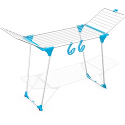 Dotato di gambe a ponte, preferite da molte consumatrici perché non intralciano con i grandi capi come lenzuola e tovaglie, questo stendibiancheria ha fantastici fili tubolari in alluminio del diametro di 6 mm, che non segnano i capi stesi come i normali fili da 2 o 3 mm. Altre caratteristiche che lo rendono interessante sono: tubolari in alluminio inattaccabili alla ruggine, consistenti protezioni antigraffio in resina, aggancio blocca-prolunghe. Infine ruote con angolari, che strutturano ulteriormente un prodotto già stabile e robusto, completano il profilo di questo stendibiancheria di qualità superiore, certificato TÜV GS.