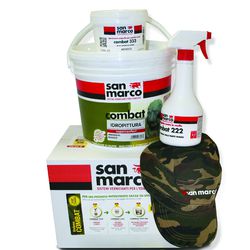 Colorificio San Marco mette a disposizione due kit antimuffa per gli interni, un pronto intervento efficace e veloce che grazie all’efficacia di tre prodotti della linea Combat (spray detergente Combat 222, igienizzante Combat 333 e idropittura Superconfort e in alternativa idropittura Combat 999), oltre ad eliminare la muffa, ne previene la ricomparsa, igienizza e risana le pareti. Con ogni kit è previsto un simpatico cappellino in omaggio.